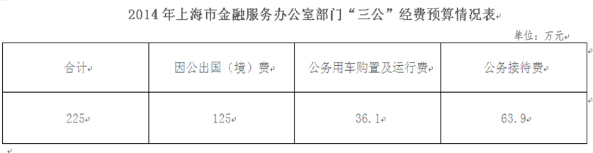 2014年上海市金融服务办公室部门“三公”经费预算说明